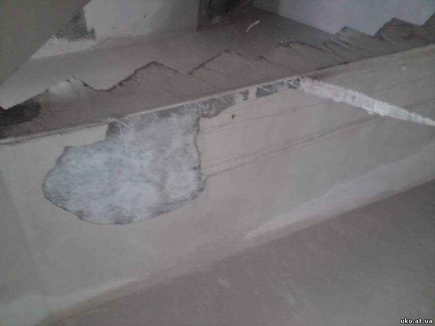 | А это сегодняшнее фото - отпала штукатурка на лесничном пролете в районе 5-го этажа. Она и в других местах поотпадала, я сделал только одно фото.