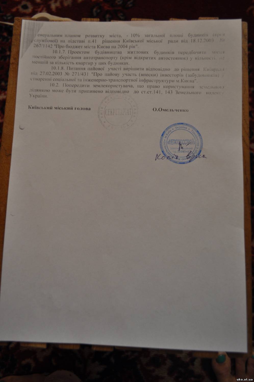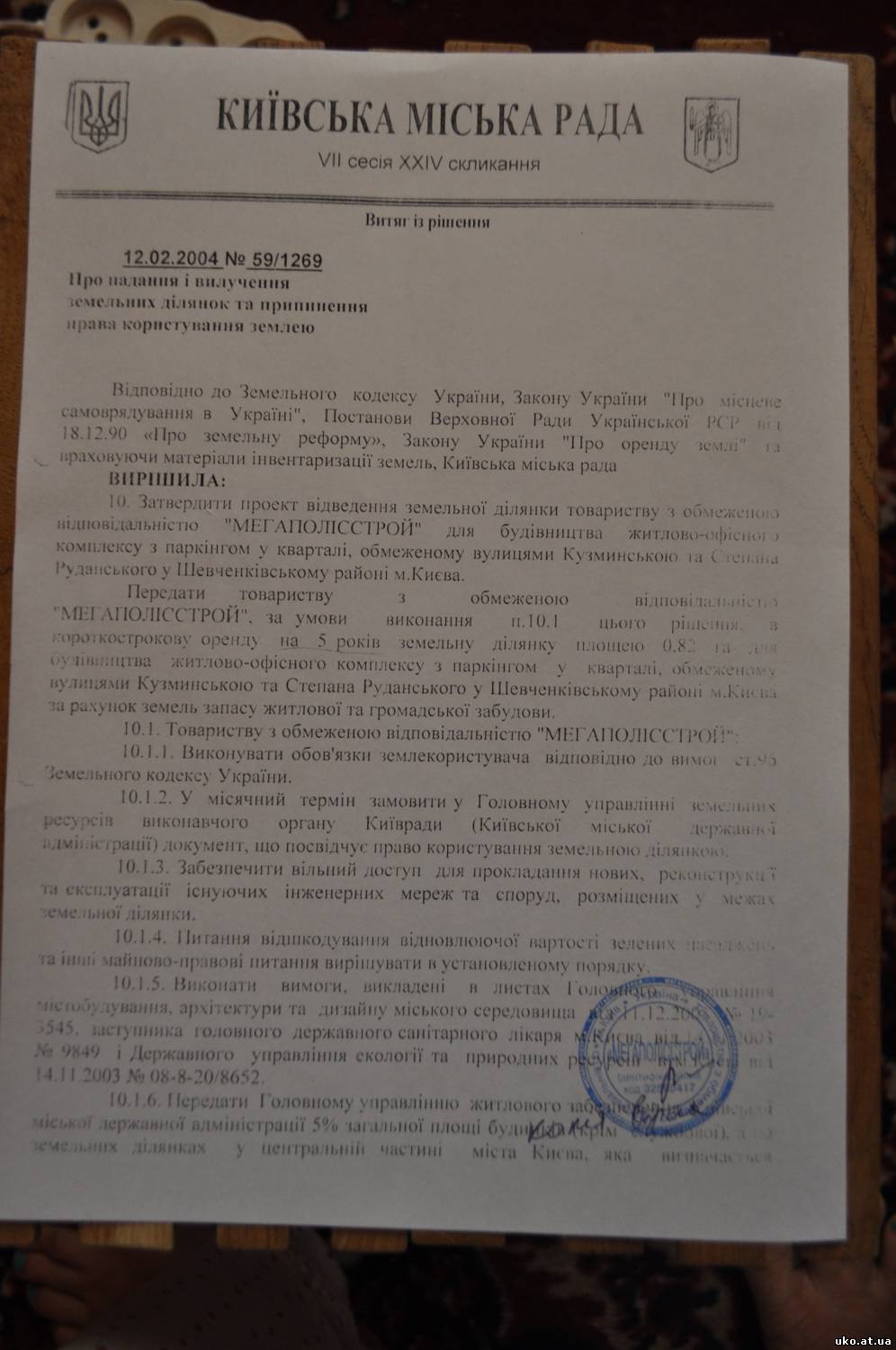 | Цитата (Vika) Вот такой документ мне вчера дала ПВ. С моей точки зрения - бесполезный документ, т.к. на основании него заключался договор об аренде земли, который никто не оспаривает, и он у нас есть.Добавлено (26.07.2013, 22:56) --------------------------------------------- Если кто не знает, на 5-ю секцию вчера получили паспорта - свой видел, все нормально, ошибок в ЄДРПОУ нет и написано, что на момент обмеров штукатурка была частично не завершена.