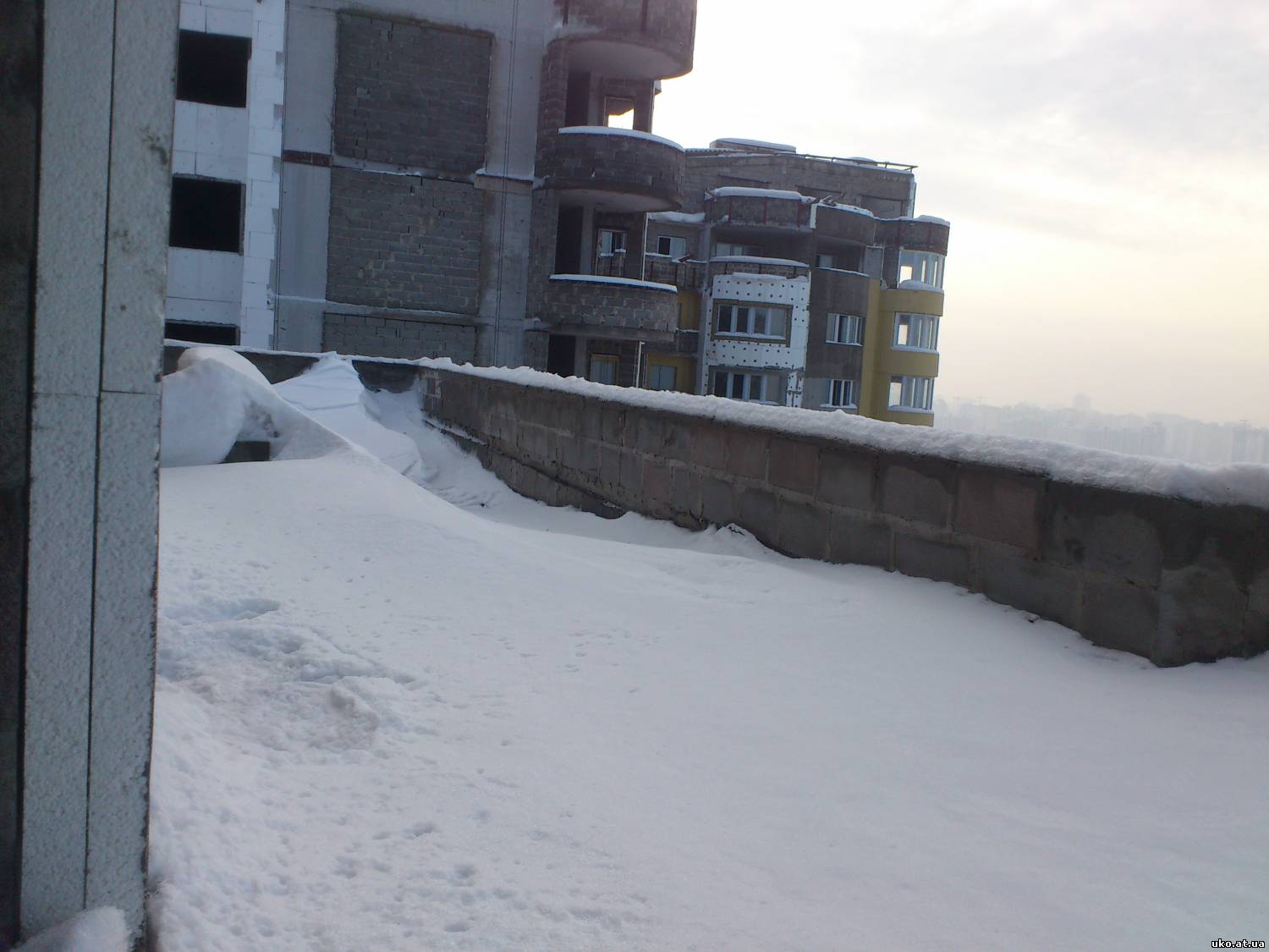 | Вчера были на стройке. Встретили 3-х рабочих на 1-й секции, это в 11 утра. По первой секции за последнее время появились лишь перила на 1-й лестнице, а так изменений с момента назначения Ильичева практически нет. На верхних этажах очень много снега. Не сделано остекление. А там где оно есть, во многих местах окна или балконные двери разбиты ветром,т.к. были оставлены в открытом положении (да еще и со снятой ручкой). Пока на 33-м этаже сухо, мы например сами по убирали снег возле нашей кв.и благо наш сосед сделал самостоятельно водосток с крыши. Но одного стока точно будет не достаточно. А система слива на крыше вообще никак не предусмотрена. Так что мы боимся, что после потепления затопит 33 этаж и этажи ниже. Кстати в известность поставили прораба Сашу, но он мог просто пропустить все мимо ушей, как свойственно всем представителям Уко.